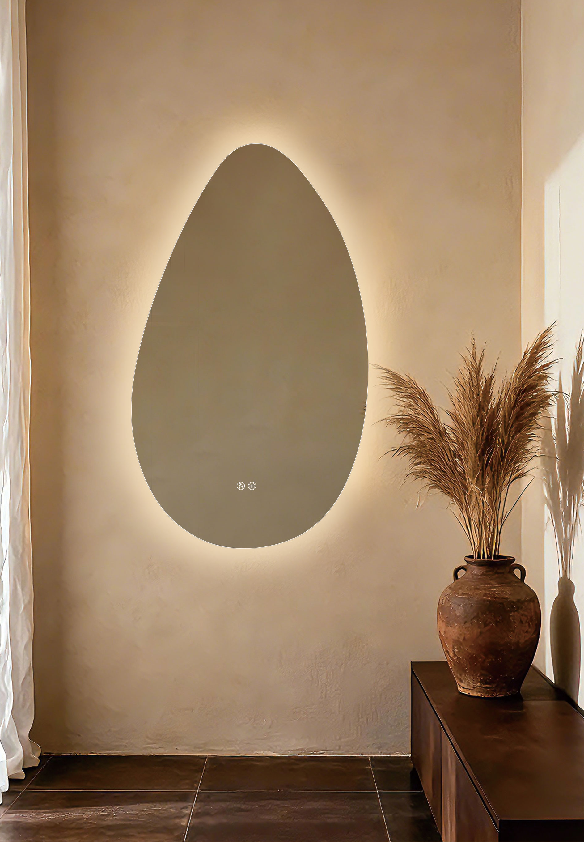 A sculptural reflection, composed to soften the room with subtle glow and fluid proportion.