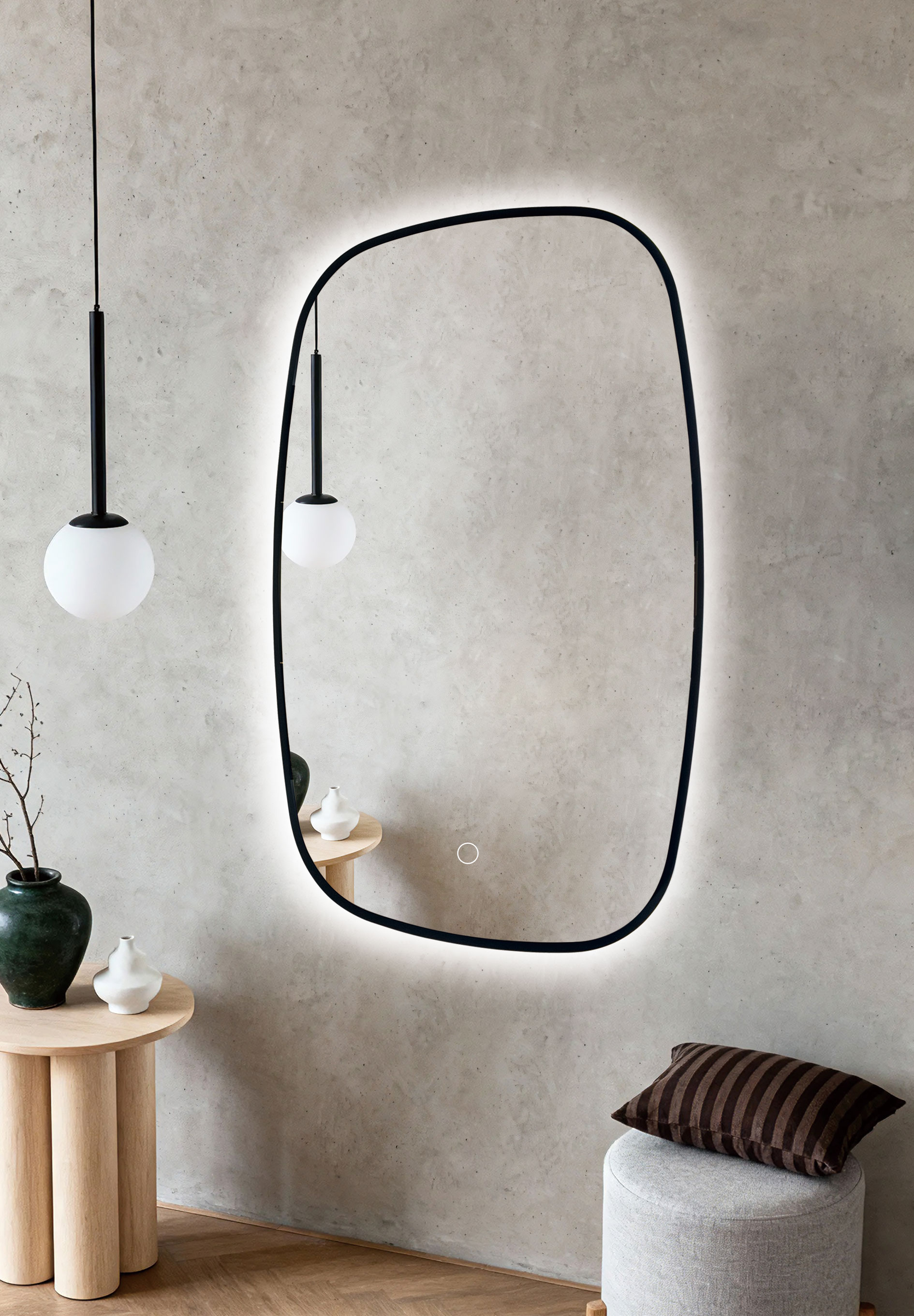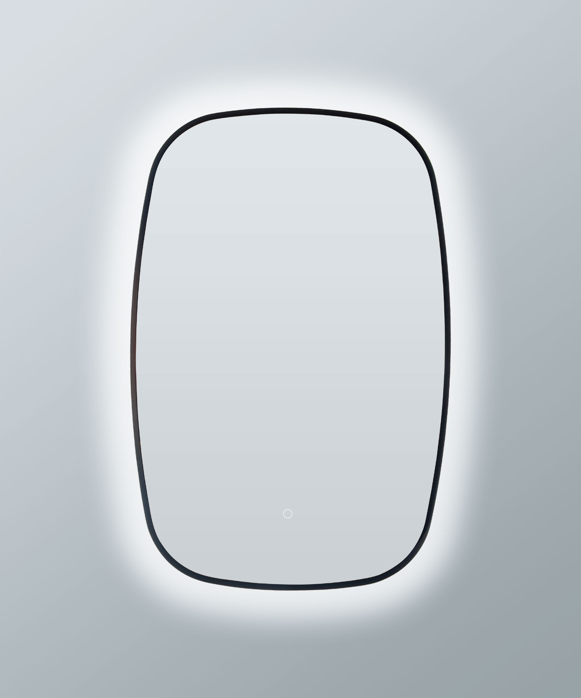 lifting the mirror from the wall with a subtle halo.