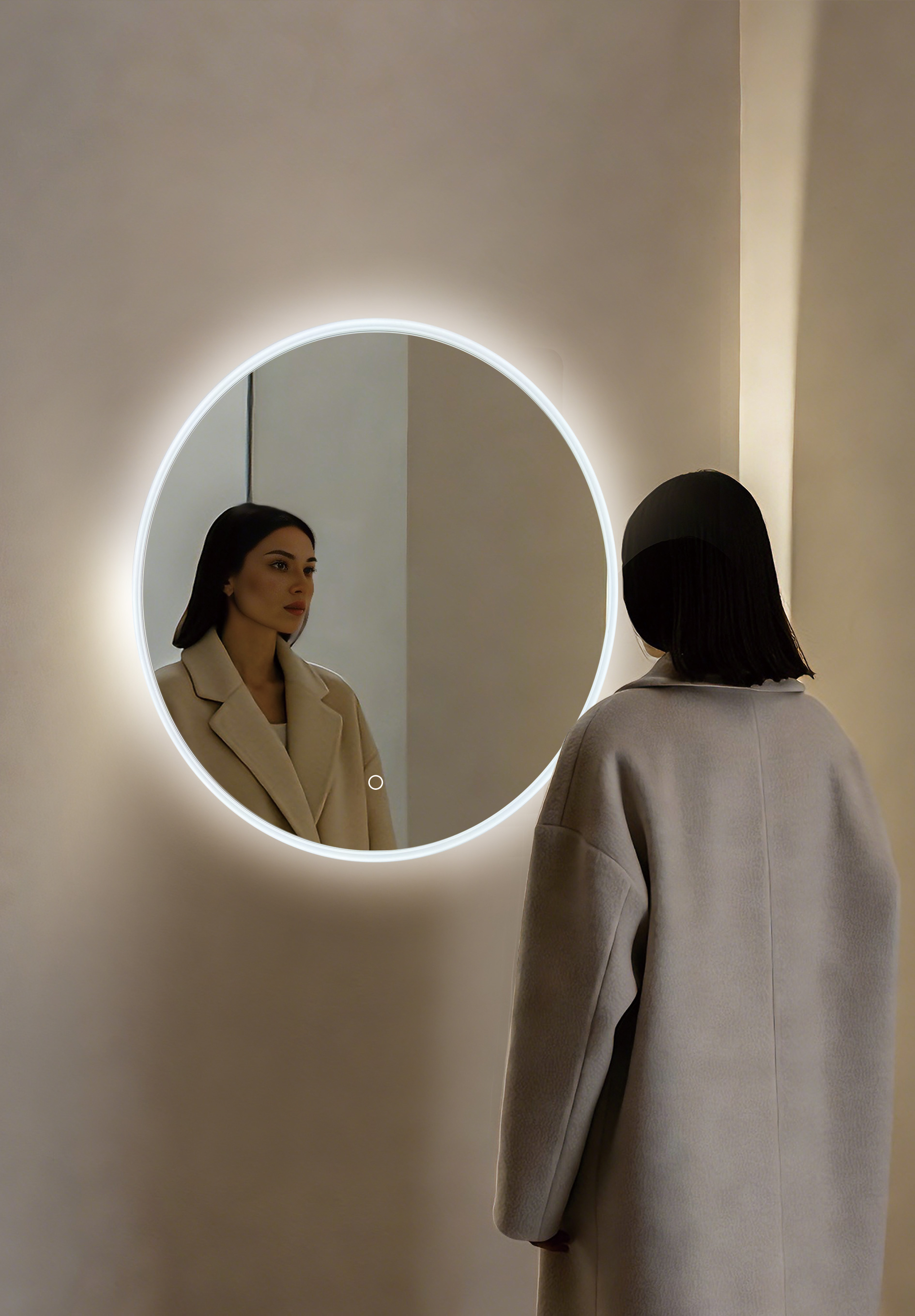 The use of dark and light mirror tones amplifies the appearance of the Palm's leaves curling forward and back. These new tints are an introduction of our new acid-etched mirror finish that diffuses light, giving off a moody, foggy glow.