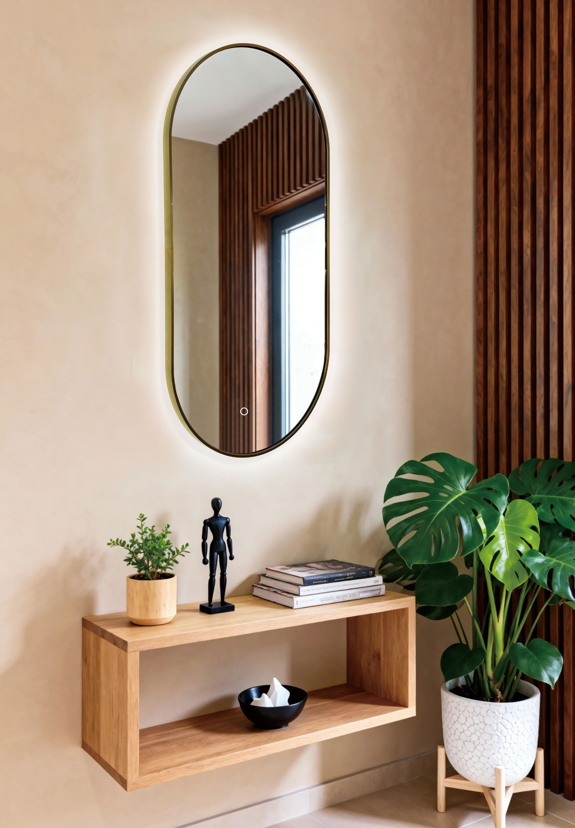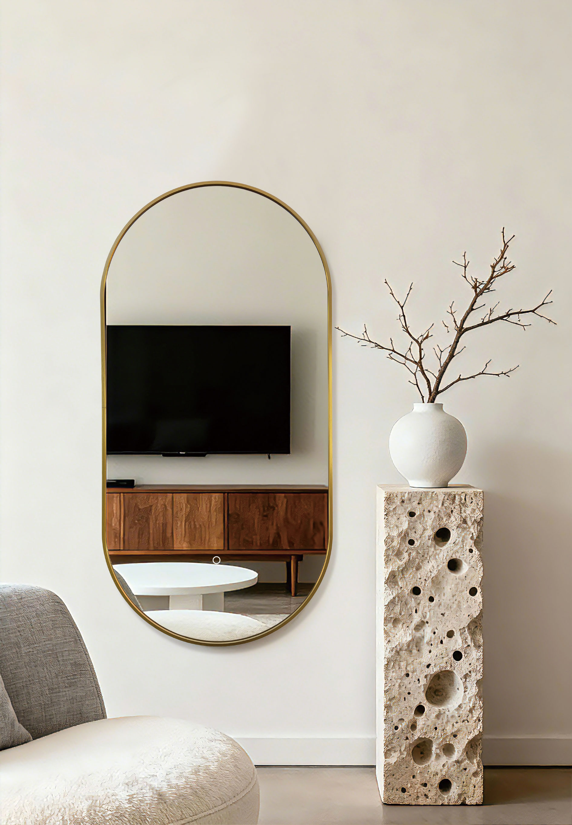 The use of dark and light mirror tones amplifies the appearance of the Palm's leaves curling forward and back. These new tints are an introduction of our new acid-etched mirror finish that diffuses light, giving off a moody, foggy glow.